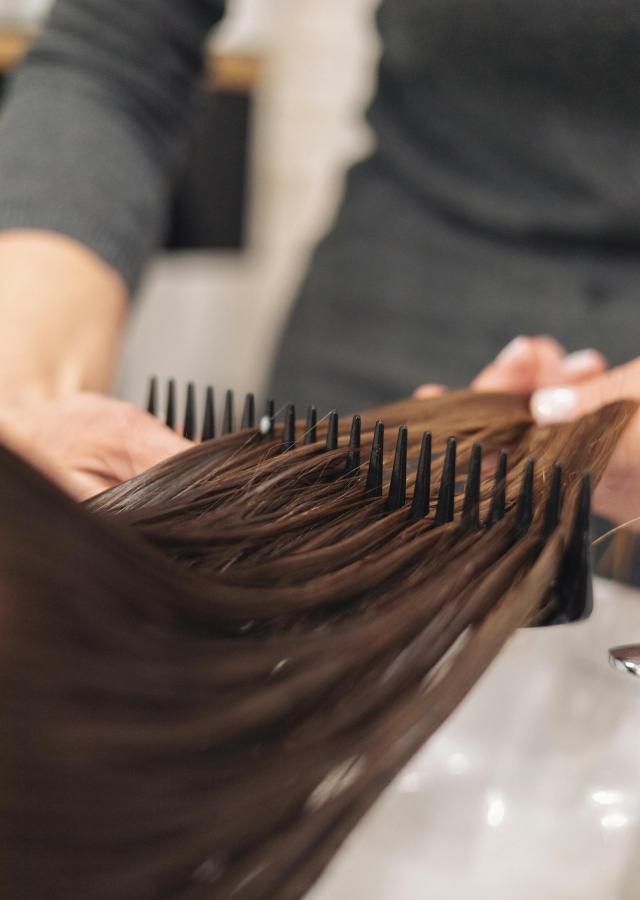 Skuteczna odbudowa zniszczonych włosów po koloryzacji, stylizacji czy działaniu czynników zewnętrznych. Zabieg przywraca elastyczność i gładkość, nadając włosom zdrowy wygląd i miękkość w dotyku.